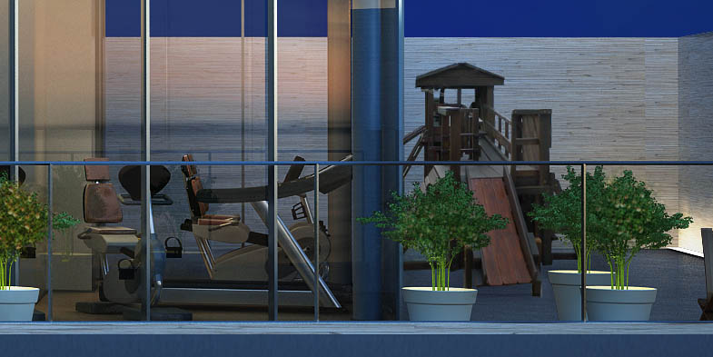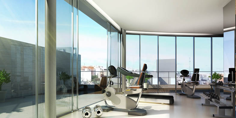 Gimnasio vidriado y moderno equipamiento