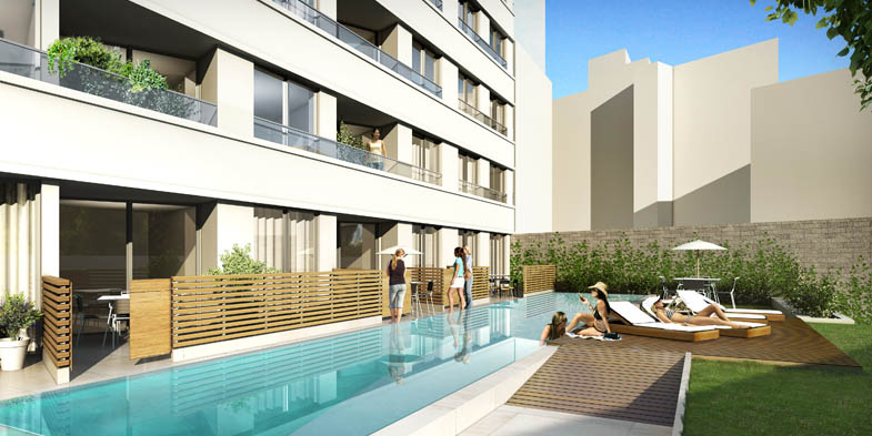 Terrazas con acceso directo a piscina